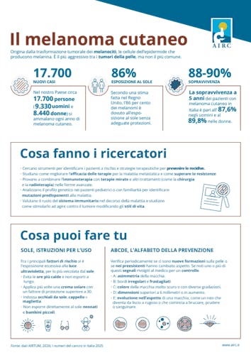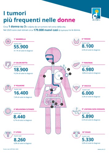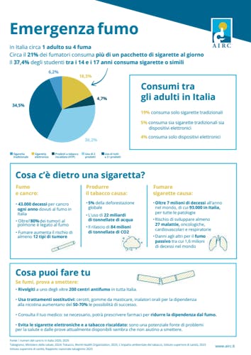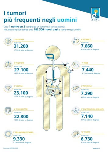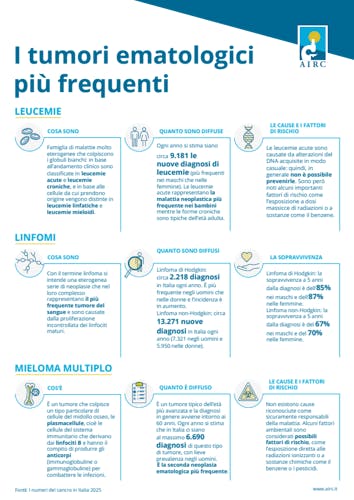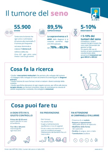 Infografiche e schede informative in formato A4, che riguardano gli ambiti della nostra missione: informazioni sulla prevenzione e la cura del cancro, destinazione di fondi alla ricerca.